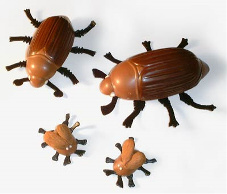 Figuren und Tafeln Einblick in eine grosse Vielfalt: Eule Maikäfer Klein, 10g: Krokant gefüllt mit Gianduja Mittel, 40g:Hohlkörper, Milchschokolade Gross, 80g:Hohlkörper, Milchschokolade Schokolade-Tafeln